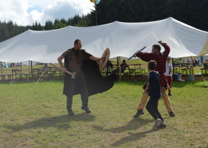 Letzte Nacht haben eine Menge Überfäller versucht unser Lager zu überfallen. Aber nicht alle haben es geschafft und werden jetzt im Kreis mit kaltem Wasser geduscht: Vormittags stand der Grulei-Postenlauf auf dem Programm. Die Gruppen bauten viele verschiedene Stationen auf:…