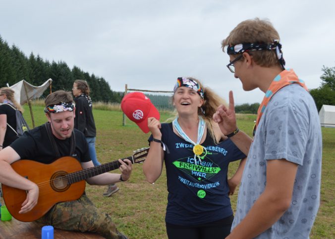 Nachdem ein hilfsbereiter Landwirt im Ort unsere Batterien geladen hat, können wir wieder regelmäßig Bilder posten. Den ganzen Tag über waren wir im Schwimmbad in Freisen. Abends stand der offene Abend an, an dem kleine Spielestationen angeboten wurden: Eine Gruppe…